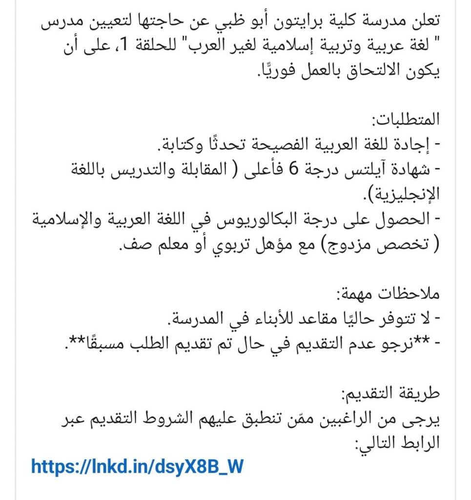 UAE Jobs Hiring Arabic-Islamic teachers for non Arab Last updated: 2026/01/11 at 5:59 PM vishwalokam.com@gmail.com Share 0 Min Read SHARE You Might Also Like Hiring Arabic Teacher Hiring English Teacher Hiring Art Teacher-Female Hiring Teachers Hiring Teachers- Al Ain Sign Up For Daily NewsletterBe keep up! Get the latest breaking news delivered straight to your inbox. Please leave this field empty You’ve been successfully subscribed to our newsletter! By signing up, you agree to our Terms of Use and acknowledge the data practices in our Privacy Policy. You may unsubscribe at any time. vishwalokam.com@gmail.com January 11, 2026 January 11, 2026 Share This Article Facebook Twitter Copy Link Print Previous News അറസ്റ്റിന് പിന്നാലെ രാഹുലിനെ അയോഗ്യനാക്കാന് നിയമസഭ; പഴുതടച്ച് പോലീസ് അന്വേഷണം, നിയമത്തിന്റെ വഴിക്ക് പോവട്ടേയെന്ന് പ്രതിപക്ഷ നേതാവ് Next News Hiring Teachers Leave a comment Leave a comment Leave a Reply Cancel replyYour email address will not be published. Required fields are marked *Comment * Name * Email * Website Save my name, email, and website in this browser for the next time I comment. Yes, add me to your mailing list Stay Connected Facebook Like Instagram Follow Youtube Subscribe Latest News പോരാട്ടത്തിനൊരുങ്ങി കോണ്ഗ്രസ്, നിയമസഭ പ്രചരണ കമ്മിറ്റി ചെയര്മാന് രമേശ് ചെന്നിത്തല, പ്രകടന പത്രിക ചെയര്മാന് ബെന്നി ബഹനാന് India Kerala February 12, 2026 ഡല്ഹി സര്വ്വകലാശാലയില് ആക്രമണ ശ്രമം, ചരിത്രകാരന് ഇര്ഫാന് ഹബീബിന് നേരെ വെള്ളം നിറച്ച ബക്കറ്റെറിഞ്ഞു (വീഡിയോ) Education India February 12, 2026 കാനഡയെ കണ്ണീരിലാഴ്ത്തിയ സ്കൂള് വെടിവെയ്പ്പ്, അക്രമി ട്രാന്സ്ജെന്ഡര്, അന്വേഷണം ആരംഭിച്ച് പോലീസ് India Internaltional February 12, 2026 ചരിത്ര സംഗമത്തിന് മണിക്കൂറുകള് മാത്രം ബാക്കി, നിർദ്ദേശവുമായി പോലീസ് മേധാവി, സമസ്ത ശതാബ്ദി സമാപനം റെക്കോര്ഡ് ബുക്കില് ഇടം നേടിയേക്കും India Internaltional Kerala February 8, 2026