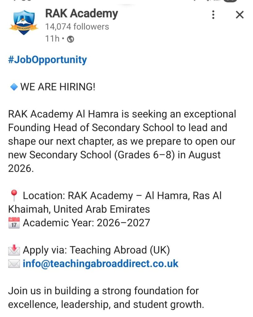 UAE Jobs Hiring Founding head of secondary Last updated: 2026/01/10 at 10:02 PM vishwalokam.com@gmail.com Share 0 Min Read SHARE You Might Also Like Hiring Arabic Teacher Hiring English Teacher Hiring Art Teacher-Female Hiring Teachers Hiring Teachers- Al Ain Sign Up For Daily NewsletterBe keep up! Get the latest breaking news delivered straight to your inbox. Please leave this field empty You’ve been successfully subscribed to our newsletter! By signing up, you agree to our Terms of Use and acknowledge the data practices in our Privacy Policy. You may unsubscribe at any time. vishwalokam.com@gmail.com January 10, 2026 January 10, 2026 Share This Article Facebook Twitter Copy Link Print Previous News Hiring teachers Next News Hiring Islamic teacher Leave a comment Leave a comment Leave a Reply Cancel replyYour email address will not be published. Required fields are marked *Comment * Name * Email * Website Save my name, email, and website in this browser for the next time I comment. Yes, add me to your mailing list Stay Connected Facebook Like Instagram Follow Youtube Subscribe Latest News പോരാട്ടത്തിനൊരുങ്ങി കോണ്ഗ്രസ്, നിയമസഭ പ്രചരണ കമ്മിറ്റി ചെയര്മാന് രമേശ് ചെന്നിത്തല, പ്രകടന പത്രിക ചെയര്മാന് ബെന്നി ബഹനാന് India Kerala February 12, 2026 ഡല്ഹി സര്വ്വകലാശാലയില് ആക്രമണ ശ്രമം, ചരിത്രകാരന് ഇര്ഫാന് ഹബീബിന് നേരെ വെള്ളം നിറച്ച ബക്കറ്റെറിഞ്ഞു (വീഡിയോ) Education India February 12, 2026 കാനഡയെ കണ്ണീരിലാഴ്ത്തിയ സ്കൂള് വെടിവെയ്പ്പ്, അക്രമി ട്രാന്സ്ജെന്ഡര്, അന്വേഷണം ആരംഭിച്ച് പോലീസ് India Internaltional February 12, 2026 ചരിത്ര സംഗമത്തിന് മണിക്കൂറുകള് മാത്രം ബാക്കി, നിർദ്ദേശവുമായി പോലീസ് മേധാവി, സമസ്ത ശതാബ്ദി സമാപനം റെക്കോര്ഡ് ബുക്കില് ഇടം നേടിയേക്കും India Internaltional Kerala February 8, 2026