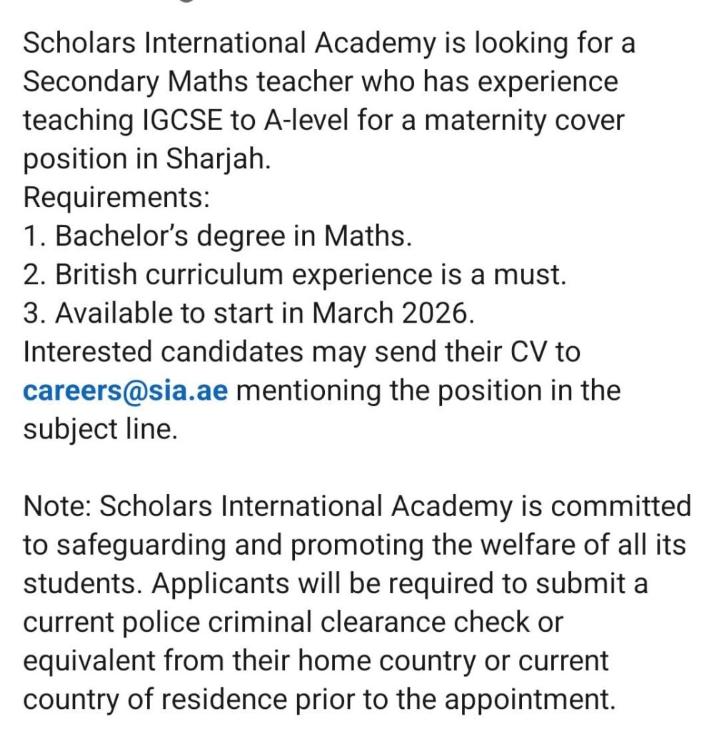 Vishwalokam > Blog > UAE Jobs > Hiring Secondary Math teacher