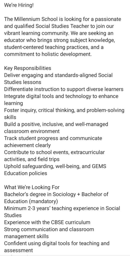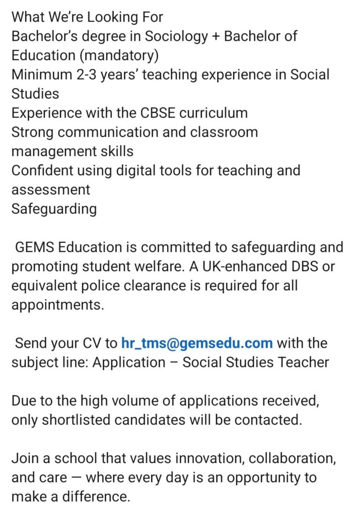 UAE Jobs Hiring social studies teacher Last updated: 2026/01/10 at 10:06 PM vishwalokam.com@gmail.com Share 0 Min Read SHARE You Might Also Like Hiring Arabic Teacher Hiring English Teacher Hiring Art Teacher-Female Hiring Teachers Hiring Teachers- Al Ain Sign Up For Daily NewsletterBe keep up! Get the latest breaking news delivered straight to your inbox. Please leave this field empty You’ve been successfully subscribed to our newsletter! By signing up, you agree to our Terms of Use and acknowledge the data practices in our Privacy Policy. You may unsubscribe at any time. vishwalokam.com@gmail.com January 10, 2026 January 10, 2026 Share This Article Facebook Twitter Copy Link Print Previous News Hiring Arabic teacher Next News അറസ്റ്റിന് പിന്നാലെ രാഹുലിനെ അയോഗ്യനാക്കാന് നിയമസഭ; പഴുതടച്ച് പോലീസ് അന്വേഷണം, നിയമത്തിന്റെ വഴിക്ക് പോവട്ടേയെന്ന് പ്രതിപക്ഷ നേതാവ് Leave a comment Leave a comment Leave a Reply Cancel replyYour email address will not be published. Required fields are marked *Comment * Name * Email * Website Save my name, email, and website in this browser for the next time I comment. Yes, add me to your mailing list Stay Connected Facebook Like Instagram Follow Youtube Subscribe Latest News പോരാട്ടത്തിനൊരുങ്ങി കോണ്ഗ്രസ്, നിയമസഭ പ്രചരണ കമ്മിറ്റി ചെയര്മാന് രമേശ് ചെന്നിത്തല, പ്രകടന പത്രിക ചെയര്മാന് ബെന്നി ബഹനാന് India Kerala February 12, 2026 ഡല്ഹി സര്വ്വകലാശാലയില് ആക്രമണ ശ്രമം, ചരിത്രകാരന് ഇര്ഫാന് ഹബീബിന് നേരെ വെള്ളം നിറച്ച ബക്കറ്റെറിഞ്ഞു (വീഡിയോ) Education India February 12, 2026 കാനഡയെ കണ്ണീരിലാഴ്ത്തിയ സ്കൂള് വെടിവെയ്പ്പ്, അക്രമി ട്രാന്സ്ജെന്ഡര്, അന്വേഷണം ആരംഭിച്ച് പോലീസ് India Internaltional February 12, 2026 ചരിത്ര സംഗമത്തിന് മണിക്കൂറുകള് മാത്രം ബാക്കി, നിർദ്ദേശവുമായി പോലീസ് മേധാവി, സമസ്ത ശതാബ്ദി സമാപനം റെക്കോര്ഡ് ബുക്കില് ഇടം നേടിയേക്കും India Internaltional Kerala February 8, 2026