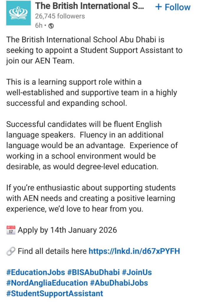 UAE Jobs Hiring Student Support Assistant Last updated: 2026/01/08 at 7:26 PM vishwalokam.com@gmail.com Share 0 Min Read SHARE You Might Also Like Hiring Arabic Teacher Hiring English Teacher Hiring Art Teacher-Female Hiring Teachers Hiring Teachers- Al Ain Sign Up For Daily NewsletterBe keep up! Get the latest breaking news delivered straight to your inbox. Please leave this field empty You’ve been successfully subscribed to our newsletter! By signing up, you agree to our Terms of Use and acknowledge the data practices in our Privacy Policy. You may unsubscribe at any time. vishwalokam.com@gmail.com January 8, 2026 January 8, 2026 Share This Article Facebook Twitter Copy Link Print Previous News Hiring Primary Science teacher (Maternity cover) Next News ഇറാനില് പ്രതിഷേധം കനക്കുന്നു; അമേരിക്ക ഇടപടണമെന്ന് റിസാ പഹ്ലവി, ട്രംപ് സ്വന്തം രാജ്യം നോക്കിയാല് മതിയെന്ന് ആയത്തുല്ല ഖമനയി Leave a comment Leave a comment Leave a Reply Cancel replyYour email address will not be published. Required fields are marked *Comment * Name * Email * Website Save my name, email, and website in this browser for the next time I comment. Yes, add me to your mailing list Stay Connected Facebook Like Instagram Follow Youtube Subscribe Latest News പോരാട്ടത്തിനൊരുങ്ങി കോണ്ഗ്രസ്, നിയമസഭ പ്രചരണ കമ്മിറ്റി ചെയര്മാന് രമേശ് ചെന്നിത്തല, പ്രകടന പത്രിക ചെയര്മാന് ബെന്നി ബഹനാന് India Kerala February 12, 2026 ഡല്ഹി സര്വ്വകലാശാലയില് ആക്രമണ ശ്രമം, ചരിത്രകാരന് ഇര്ഫാന് ഹബീബിന് നേരെ വെള്ളം നിറച്ച ബക്കറ്റെറിഞ്ഞു (വീഡിയോ) Education India February 12, 2026 കാനഡയെ കണ്ണീരിലാഴ്ത്തിയ സ്കൂള് വെടിവെയ്പ്പ്, അക്രമി ട്രാന്സ്ജെന്ഡര്, അന്വേഷണം ആരംഭിച്ച് പോലീസ് India Internaltional February 12, 2026 ചരിത്ര സംഗമത്തിന് മണിക്കൂറുകള് മാത്രം ബാക്കി, നിർദ്ദേശവുമായി പോലീസ് മേധാവി, സമസ്ത ശതാബ്ദി സമാപനം റെക്കോര്ഡ് ബുക്കില് ഇടം നേടിയേക്കും India Internaltional Kerala February 8, 2026