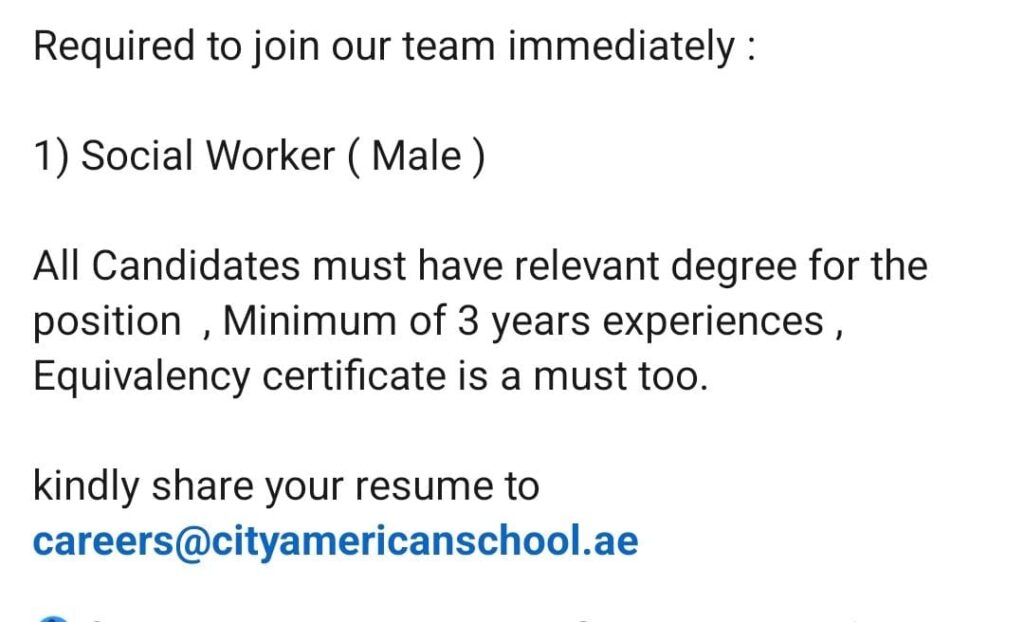 Vishwalokam > Blog > UAE Jobs > Social Worker (Male)